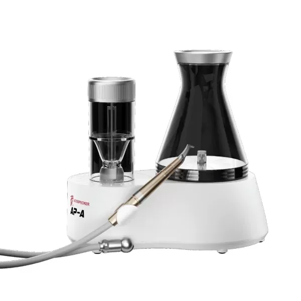 Pulido De Aire Dental Woodpecker AP-A Pulido es una herramienta de última generación diseñada para proporcionar una limpieza dental eficiente y precisa mediante la tecnología de pulido por aire. Esta unidad compacta y ergonómica está equipada con un sistema de alta precisión que combina aire comprimido y polvo abrasivo para eliminar eficazmente manchas, placa y cálculo dental, mejorando así la salud bucal y la estética dental de los pacientes. Con un diseño que facilita el uso y la integración en cualquier entorno clínico, el pulidor AP-A es una elección ideal para profesionales que buscan optimizar sus procedimientos de higiene dental.